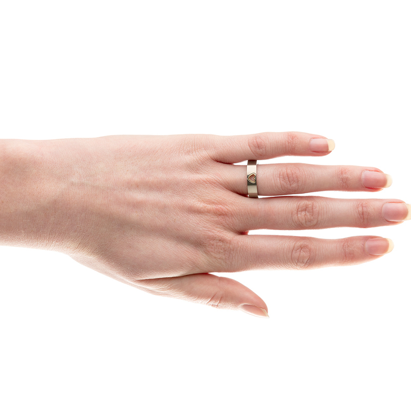 Deze gematteerde ring van Boccia Titanium heeft een goudkleurig accent in de vorm van een hart. De 0143-02 is verkrijgbaar in meerdere maten